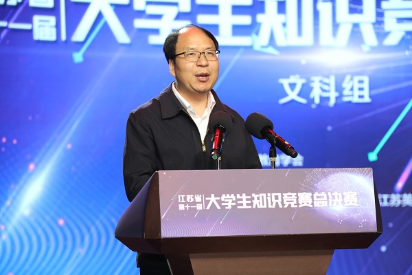 决赛开始前,江苏省教育厅副厅长王成斌发表了讲话,他从服务于素质教育改革实践和高校人才培养的高度充分肯定了大学生知识竞赛的必要性。王厅长指出,知识竞赛以推动科学技术教育与人文社科教育的交叉融合为路径,以促进高校人才培养模式改革为宗旨,强化了大学生对文化素质教育的认知高度,促进了大学生付诸于跨专业跨领域的学习实践,是我省大学生素质教育工作的重要抓手。最后,他寄语决赛选手、预祝他们赛出风格与水平。