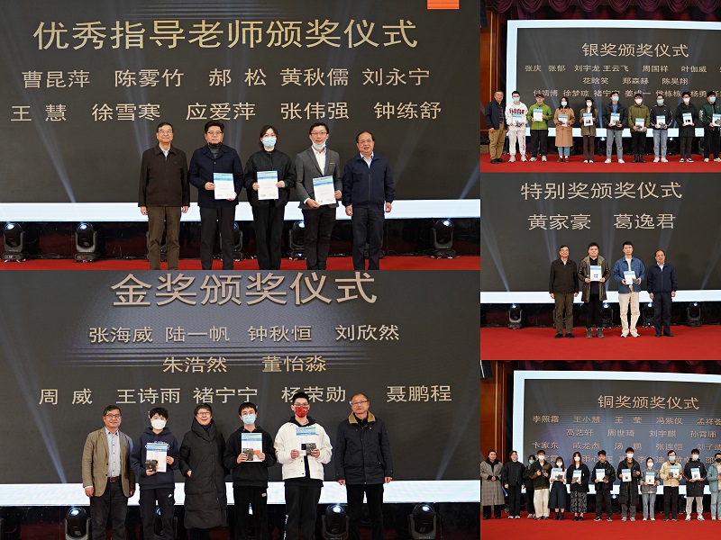 随后,丁晓昌老师、顾万峰老师颁发了特别奖和优秀指导教师奖;陈小波老师、肖勇老师、朱毅老师颁发了金奖;吴志忠老师、魏泰祥老师颁发了银奖,曹昆萍老师、周婷老师、靳泉老师颁发了铜奖。