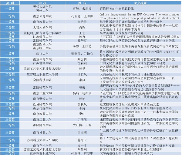 为进一步支持我省高校外语教师科研,推动高校外语教学建设与创新,在江苏省高等教育学会指导下,江苏省高等学校外国语教学研究会与上海外语教育出版社共同举办科研之星——2022年“外教社杯”江苏省高校外语科研论文评选活动?;疃玫浇帐∧诟咝=淌Φ墓刈⒉⒒陡?,经组委会组织专家评审,评选出一等奖3名,二等奖10名,三等奖14名。具体名单如下: