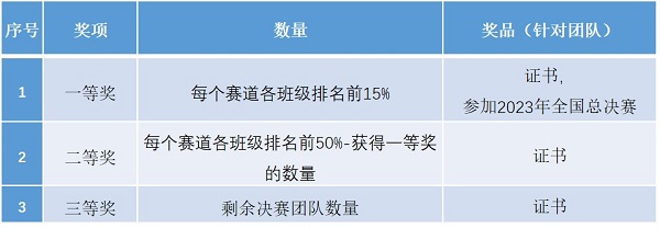 3.初赛不设置任何奖项,决赛的奖项设置如下表所示: