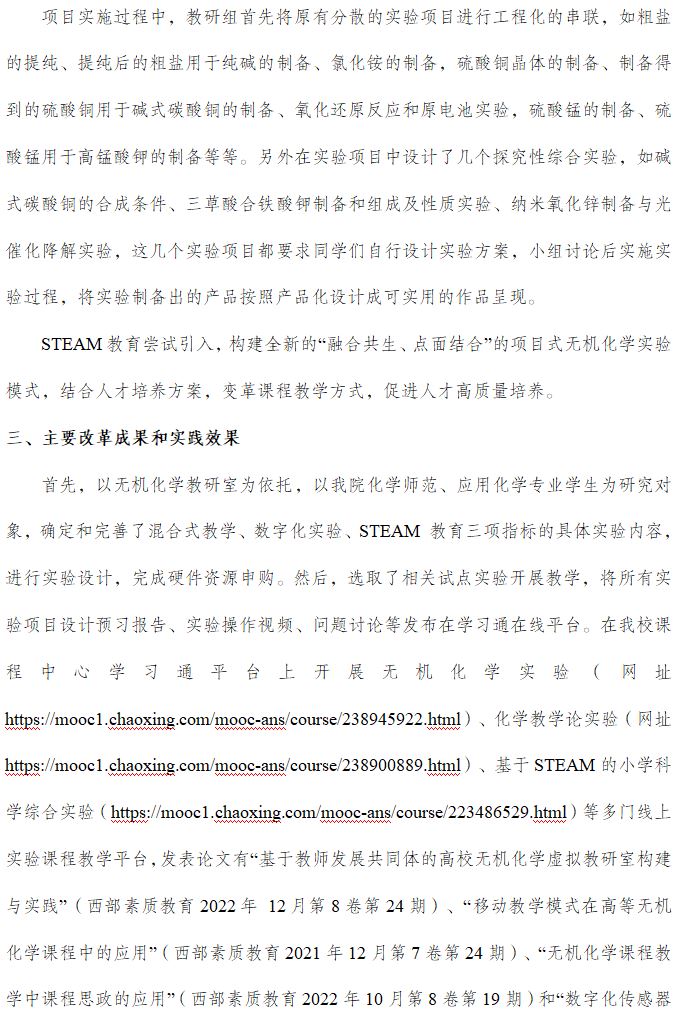 南京晓庄学院王小锋/郎雷鸣 主持完成了2021年江苏高校“教学研究工作”专项课题“基于超星学习通平台的无机化学实验与数字化、STEAM融合的教学研究”(课题编号:2021JSJY028),课题组主要成员:程炯佳、刘少贤、赵继阳、石翛然、潘兆瑞、郑波、邵阳。