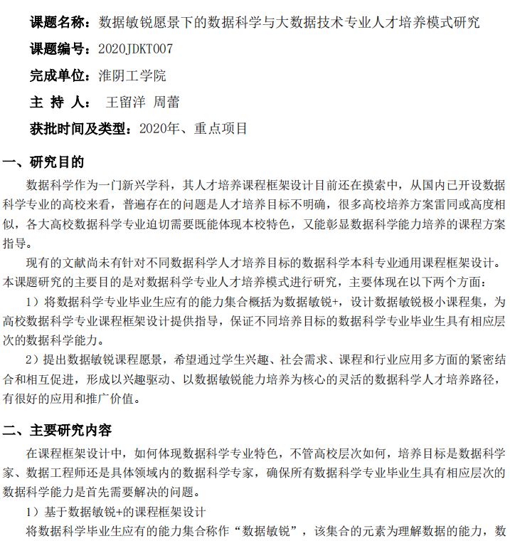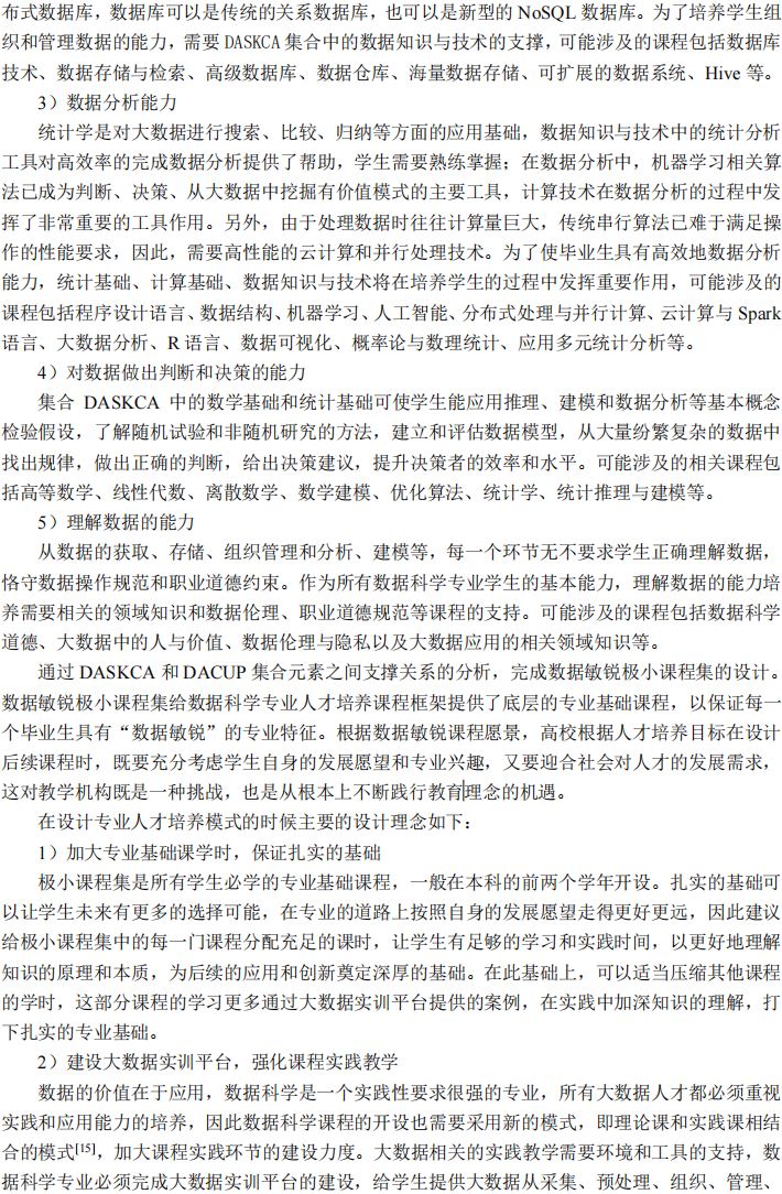 数据敏锐愿景下的数据科学与大数据技术专业人才培养模式研究