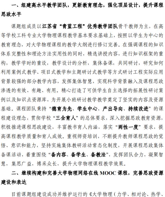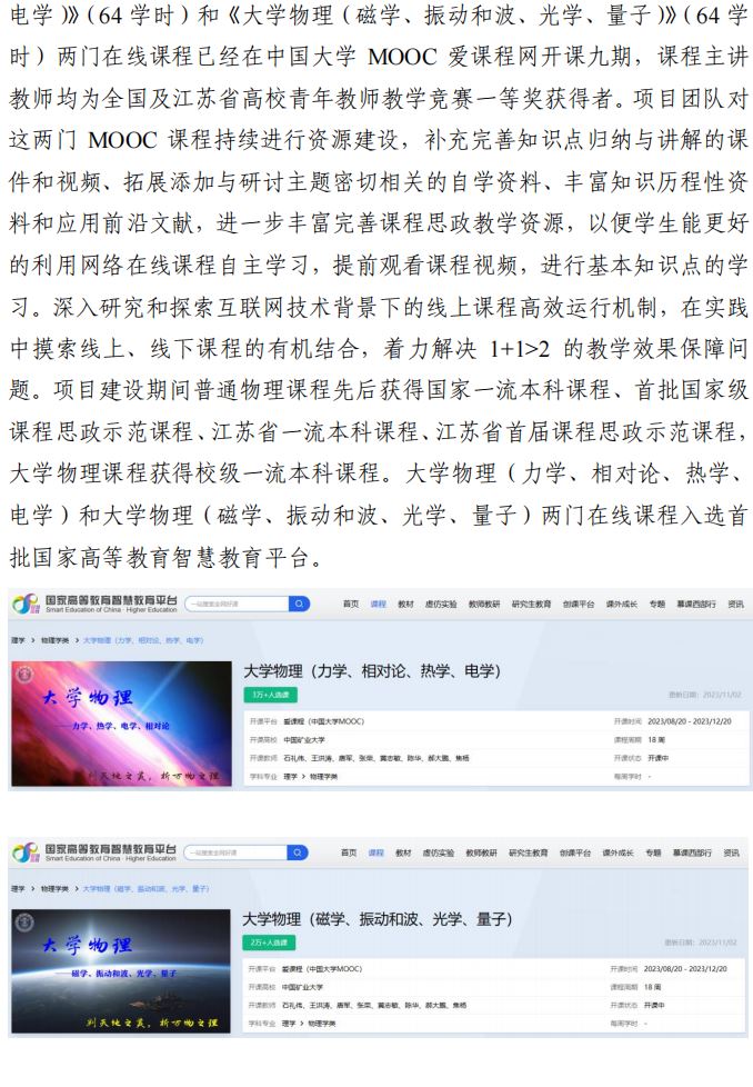 中国矿业大学唐军、王洪涛 主持完成了2021年江苏省高?!按笱投逃薄盎】慰纬倘骸弊ㄏ羁翁狻澳茉醋试刺厣咝4笱锢砜纬趟颊哪谌萁ㄉ杓澳J教剿鳌保翁獗嗪牛?021JDKT033),课题组主要成员:石礼伟、寻之朋、黄志敏、张荣、郝大鹏、焦杨、陈华。