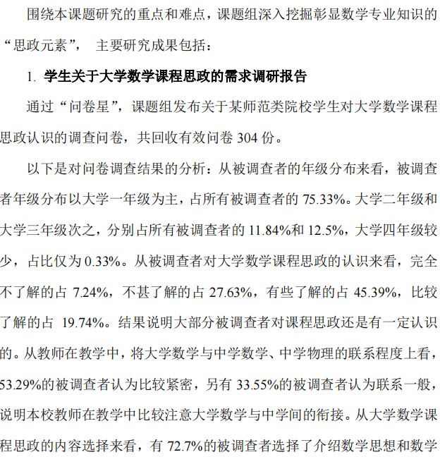 江苏第二师范学院王忠谦、卢涛 主持完成了2022年江苏省高?!案咧柿抗部谓萄Ц母镅芯俊弊ㄏ羁翁?quot;师范类院校大学数学“课程思政”建设的探索与实践”(课题编号:2022JDKT036),课题组主要成员:陈 波、周 璇、陆小庆。