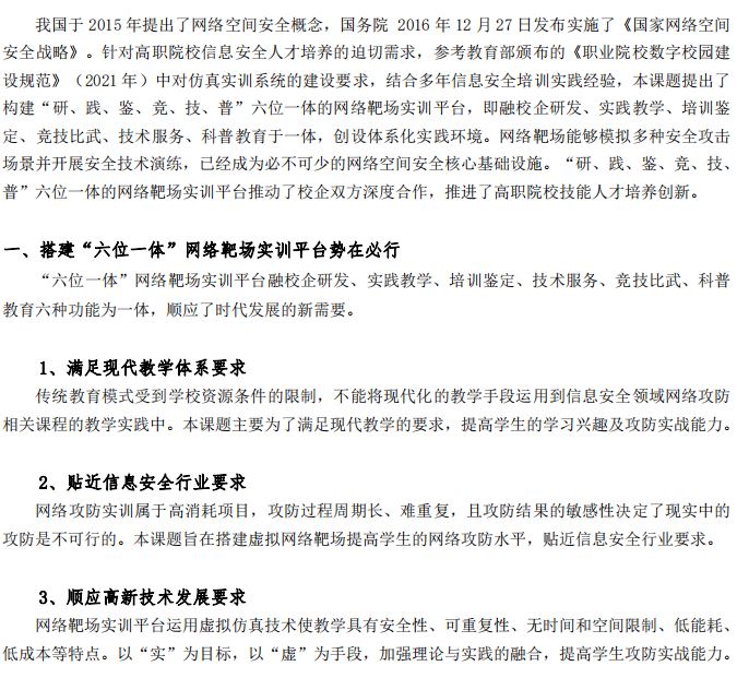 盐城工业职业技术学院王慧慧/陈杰 主持完成了江苏省高?!爸腔劢逃虢萄只脱芯俊弊ㄏ羁翁?quot;“六位一体”网络靶场实训平台研究”(课题编号:2022ZHSZ78),课题组主要成员:夏利玲、顾建华、沈海荣。