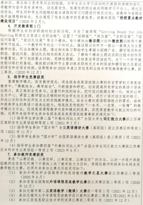 江苏信息职业技术学院周韵/杨春霞 主持完成了2020年江苏高?!按笱刂式逃胧只纬探ㄉ琛弊ㄏ羁翁狻盎凇安龅枷蚍ā钡母咧坝⒂镌谙呖谓ㄉ杪肪堆芯俊保翁獗嗪牛?020JDKT089),课题组主要成员:陆晓华、周卫东、沈秋华、李敏。