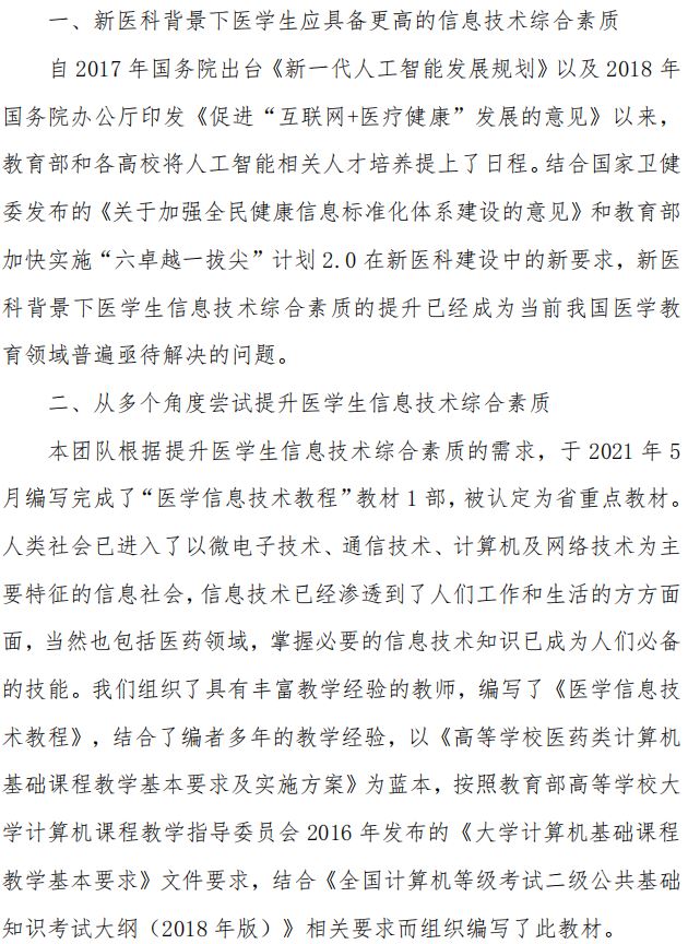 徐州医科大学刘伟/孟晓静 主持完成了2020年江苏高?!按笱刂式逃胧只纬探ㄉ琛弊ㄏ羁翁狻耙窖畔⒓际踝酆纤刂侍嵘呗匝芯俊保翁獗嗪牛?020JDKT040),课题组主要成员:朱婷婷、张红伟、吕恩辉、郝杰。