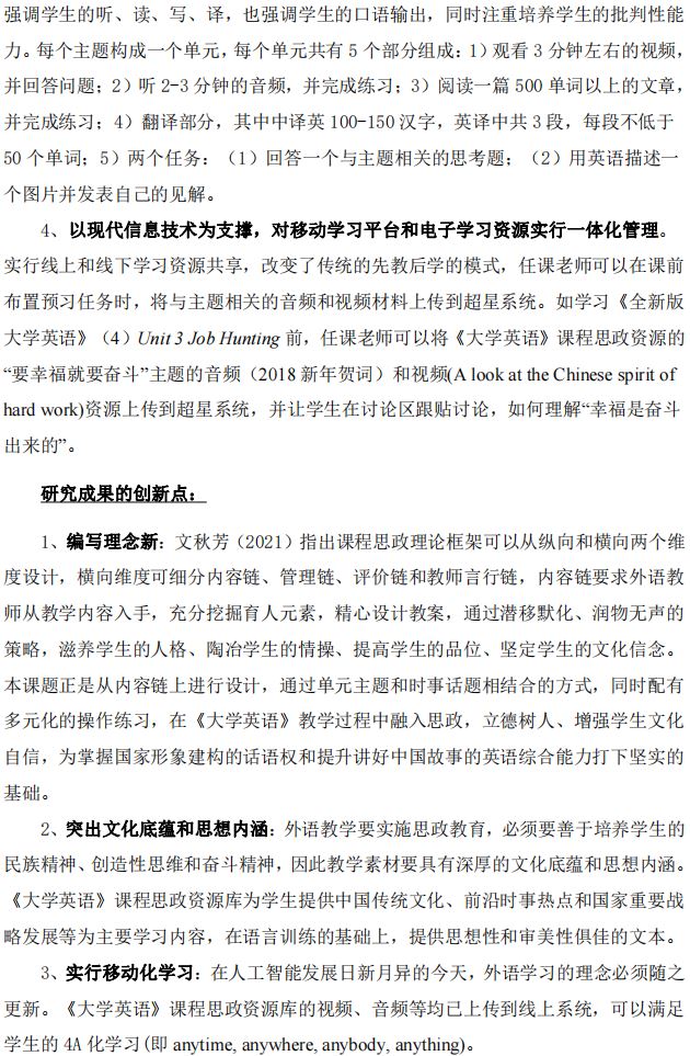 东南大学成贤学院谭艳珍 主持完成了2022年江苏高?!肮步ǜ咧柿康耐庥锝逃律弊ㄏ钛芯靠翁狻?/span>立德树人视域下《大学英语》 课程思政的探索与研究 ”(课题编号:2022WJZD003),课题组主要成员:刘须明、陈雪琼、蒋华、王晓峰、冯恩玉、周小雯、严艳、宋涛。