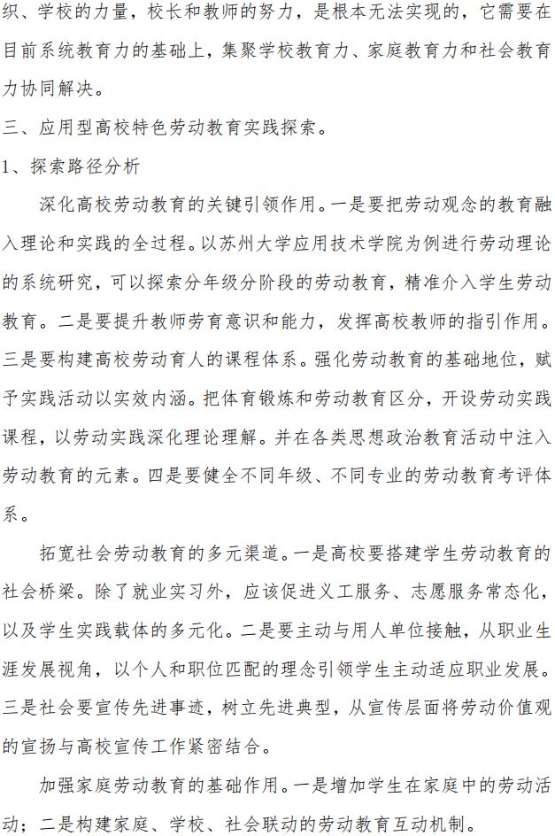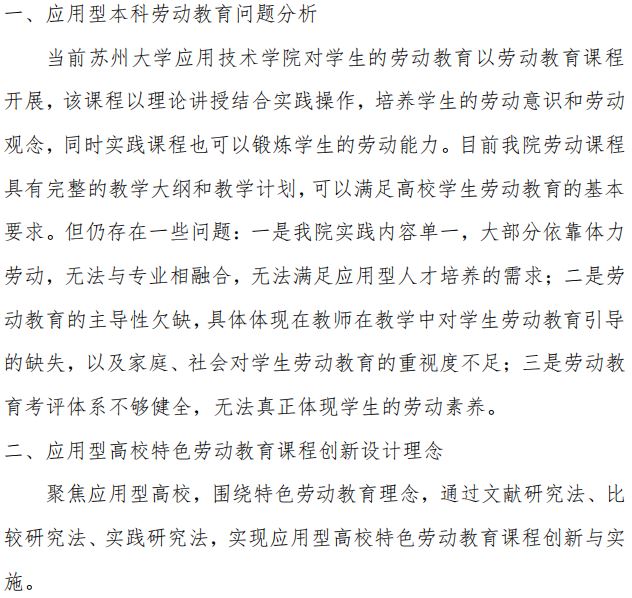 应用型高校特色劳动教育课程创新与实施研究——以苏州大学应用技术学院为例