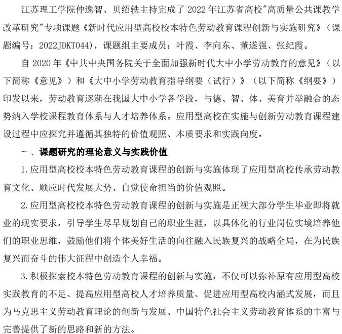 新时代应用型高校校本特色劳动教育课程创新与实施研究