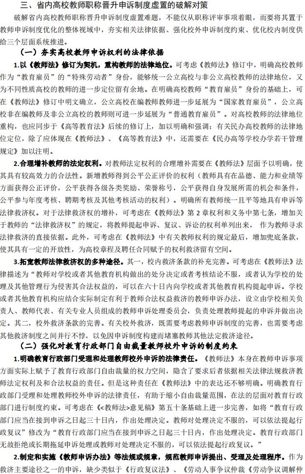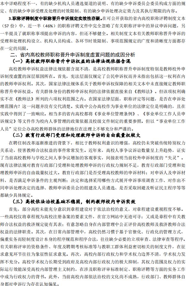 省内高校教师晋升申诉制度虚置问题的成因及对策研究