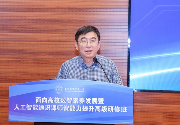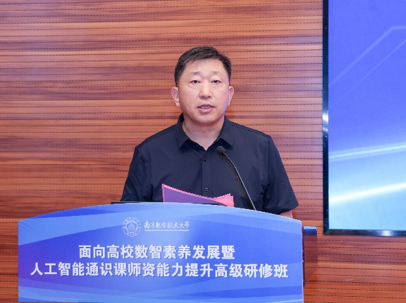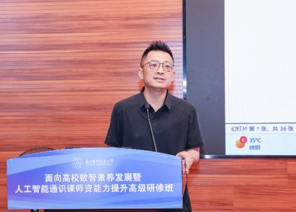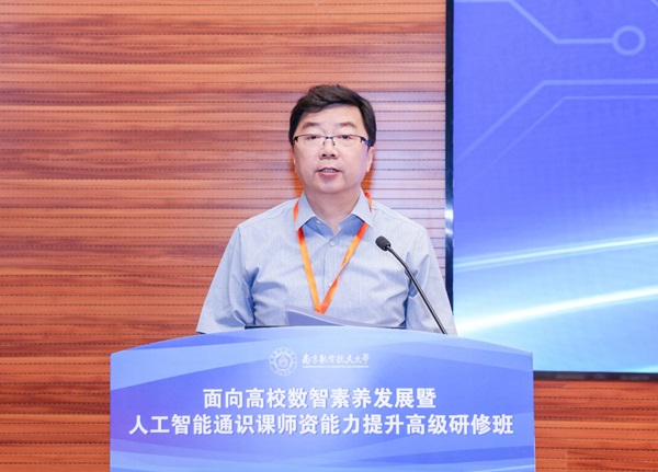 南京航空航天大学副校长施大宁在致辞中表示,当前以人工智能为核心的新一轮科技革命正深刻重塑全球经济结构和社会形态,高等教育面临前所未有的机遇与挑战。他强调,提升师生人工智能素养是服务国家创新发展的紧迫任务。南京航空航天大学已将人工智能赋能教育教学列为重点工作,构建了分层分类的教师发展课程体系。施校长指出,本次研修班致力于推动AI通识教育创新,希望与会专家和同仁在交流研讨中收获丰硕成果,共同推动高等教育的高质量发展。