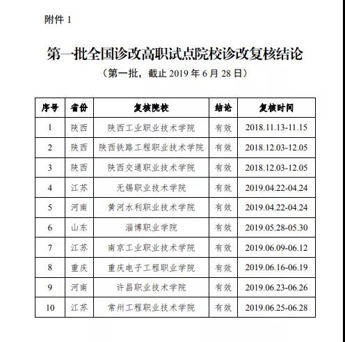 附件:1.全国诊改高职试点院校诊改复核结论(第一批)